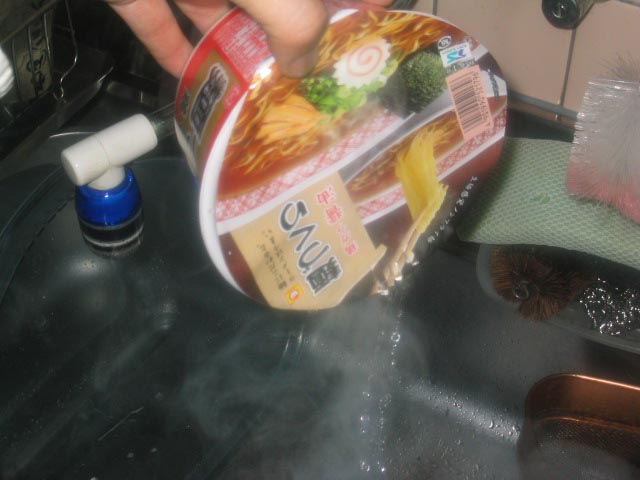 カップ焼きそばの湯切りで、間違いを捜せ!